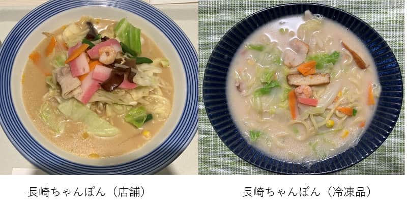 長崎ちゃんぽんの店舗品と冷凍品の比較